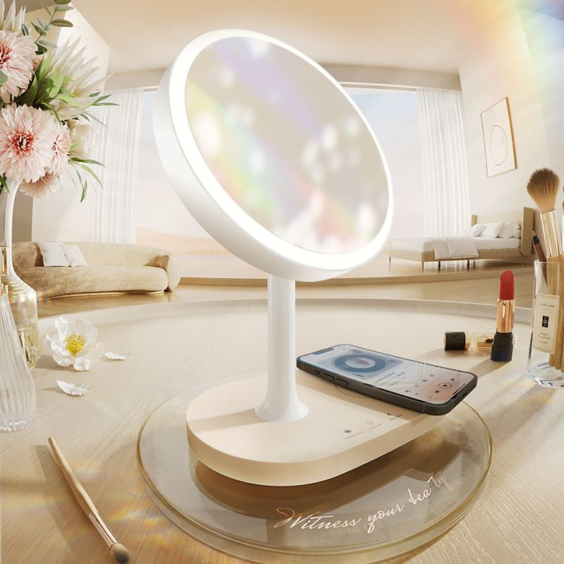 ● 两档正白镜面补光,三档台灯,无极调光小夜灯。