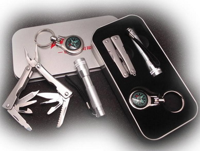 产品说明:组成:定制军用刀+小手电筒+指南针。