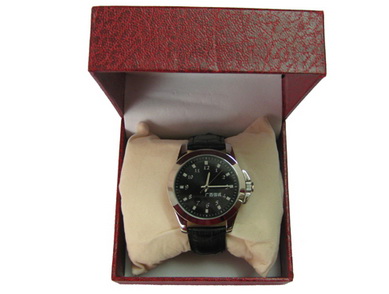产品说明:表壳材质为合金,表带材质为皮革,表扣为针扣,指针显示盘;表盘直径40MM,厚度10MM。